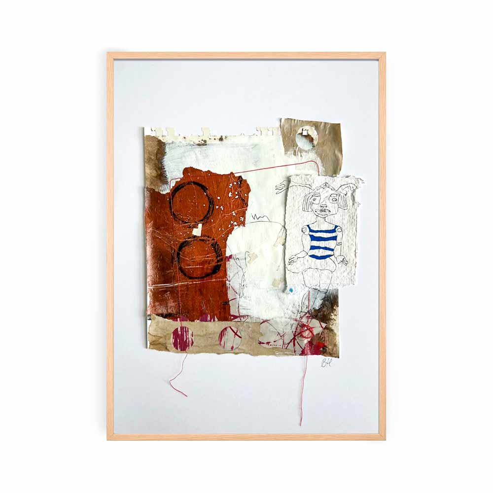 Originalt værk (collage & mixed media). Selve værket er limet op på hvidt syrefrit papir (Hahnemühle papir), så det falmer ikke.